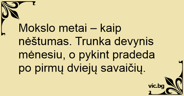 Mokslo metai – kaip nėštumas. Trunka devynis mėnesiu, o pykint pradeda po pirmų dviejų savaičių.