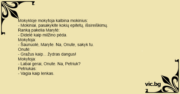 - Mokiniai, pasakykite kokių epitetų, išsireiškimų.