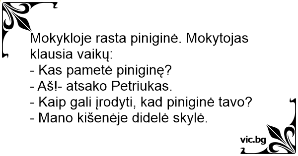 Mokykloje rasta piniginė. Mokytojas klausia vaikų: