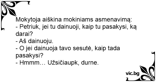 - O jei dainuoja tavo sesutė, kaip tada pasakysi?