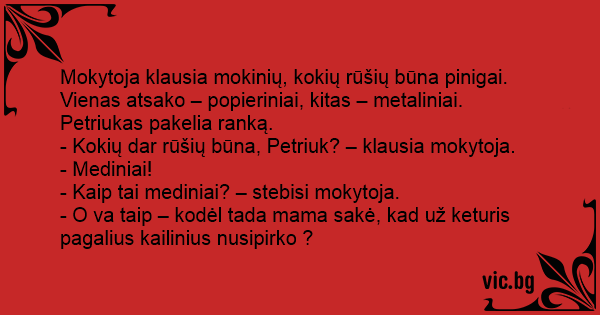 - Kokių dar rūšių būna, Petriuk? – klausia mokytoja.