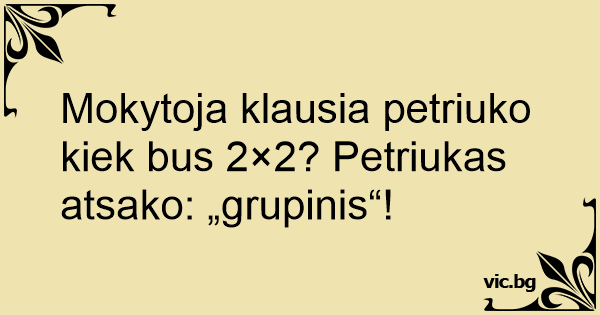 Mokytoja klausia petriuko kiek bus 2×2? Petriukas atsako: „grupinis“!