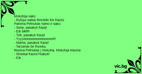 Nueina Petriukas į mokyklą. Mokytoja klausia:
