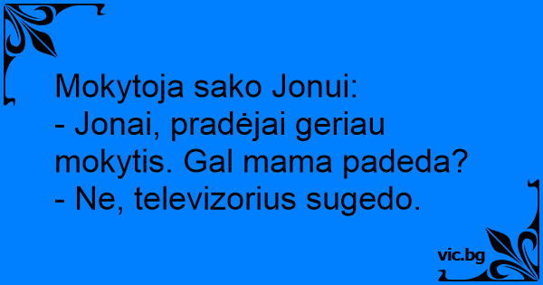 - Jonai, pradėjai geriau mokytis. Gal mama padeda?
