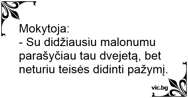 - Su didžiausiu malonumu parašyčiau tau dvejetą, bet neturiu teisės didinti pažymį.