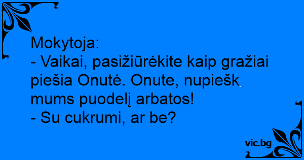 - Vaikai, pasižiūrėkite kaip gražiai piešia Onutė. Onute, nupiešk mums puodelį arbatos!