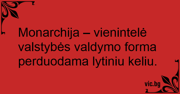 Monarchija – vienintelė valstybės valdymo forma perduodama lytiniu keliu.