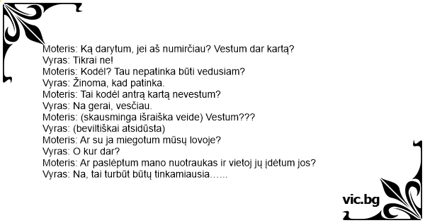 Vyras: Na gerai, vesčiau.