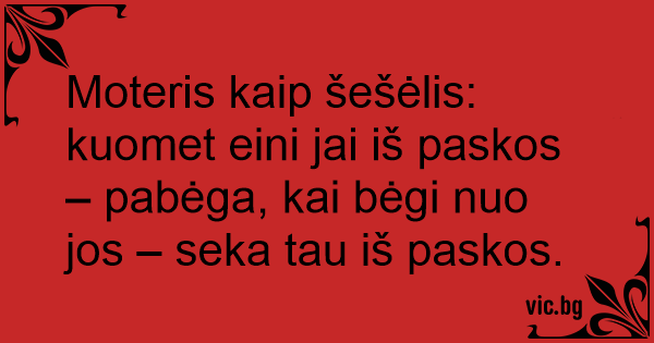 Moteris kaip šešėlis: kuomet eini jai iš paskos – pabėga, kai bėgi nuo jos – seka tau iš paskos.