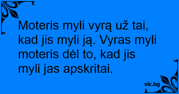 Moteris myli vyrą už tai, kad jis myli ją. Vyras myli moteris dėl to, kad jis myli jas apskritai.