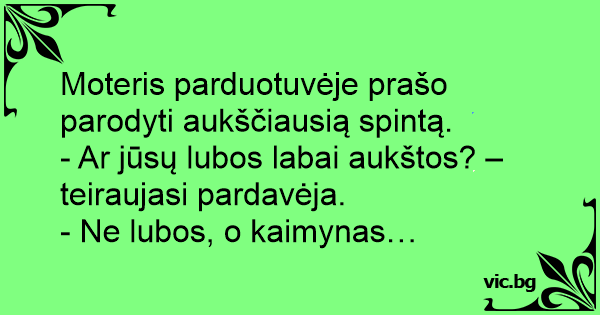 - Ar jūsų lubos labai aukštos? – teiraujasi pardavėja.