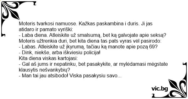 - Labas. Atleiskite už įkyrumą, tačiau ką manote apie pozą 69?