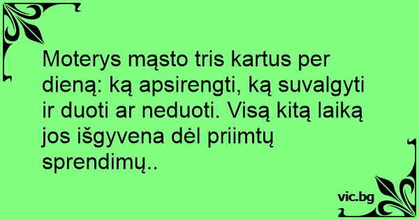 Moterys mąsto tris kartus per dieną: ką apsirengti, ką suvalgyti ir duoti ar neduoti. Visą kitą laiką jos išgyvena dėl priimtų sprendimų..