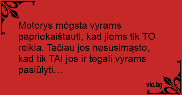 Moterys mėgsta vyrams papriekaištauti, kad jiems tik TO reikia. Tačiau jos nesusimąsto, kad tik TAI jos ir tegali vyrams pasiūlyti…