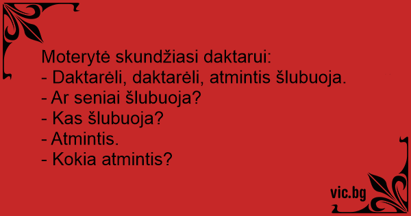 - Daktarėli, daktarėli, atmintis šlubuoja.