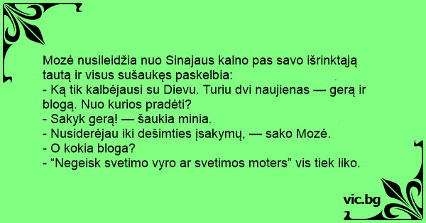 - Nusiderėjau iki dešimties įsakymų, — sako Mozė.