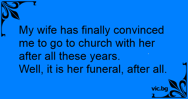 My wife has finally convinced me to go to church with her after all these years.