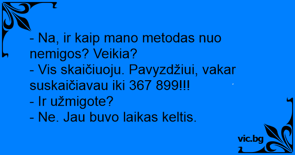 - Vis skaičiuoju. Pavyzdžiui, vakar suskaičiavau iki 367 899!!!