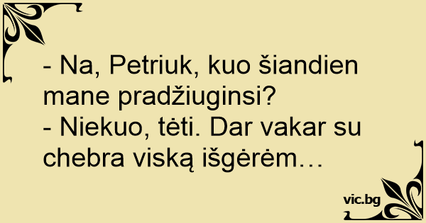 - Na, Petriuk, kuo šiandien mane pradžiuginsi?