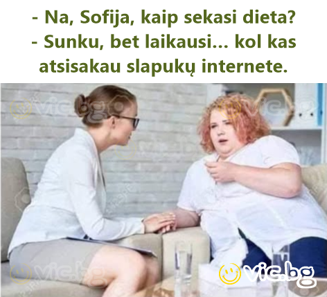 - Nu, Sofija, kā iet ar diētu? - Grūti, bet turu sevi rokās… pagaidām atsakos no sīkdatnēm internetā.