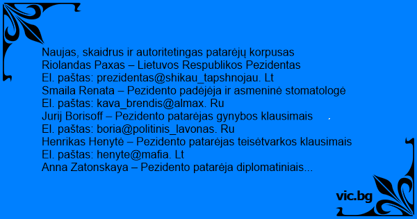 El. paštas: prezidentas@shikau_tapshnojau. Lt