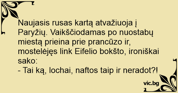 Naujasis rusas kartą atvažiuoja į Paryžių. Vaikščiodamas po nuostabų miestą prieina prie prancūzo ir, mostelėjęs link Eifelio bokšto, ironiškai sako: