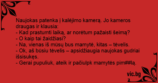 Naujokas patenka į kalėjimo kamerą. Jo kameros draugas ir klausia: