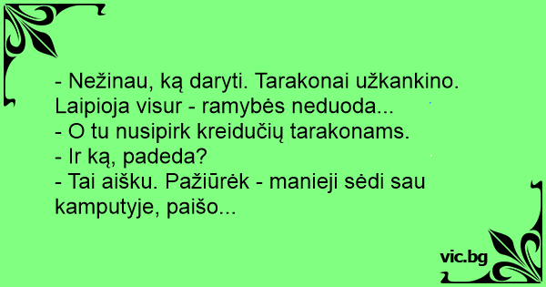 - Nežinau, ką daryti. Tarakonai užkankino. Laipioja visur - ramybės neduoda...