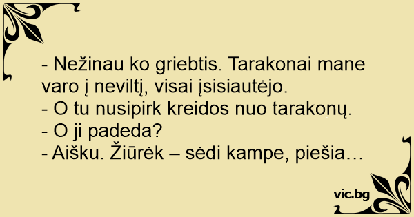 - Nežinau ko griebtis. Tarakonai mane varo į neviltį, visai įsisiautėjo.