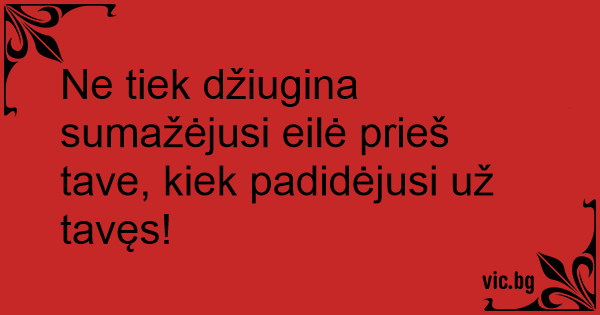 Ne tiek džiugina sumažėjusi eilė prieš tave, kiek padidėjusi už tavęs!