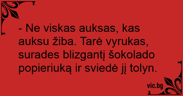 - Ne viskas auksas, kas auksu žiba. Tarė vyrukas, surades blizgantį šokolado popieriuką ir sviedė jį tolyn.