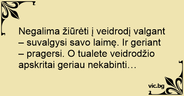 Negalima žiūrėti į veidrodį valgant – suvalgysi savo laimę. Ir geriant – pragersi. O tualete veidrodžio apskritai geriau nekabinti…