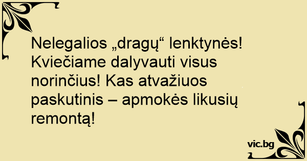Nelegalios „dragų“ lenktynės! Kviečiame dalyvauti visus norinčius! Kas atvažiuos paskutinis – apmokės likusių remontą!