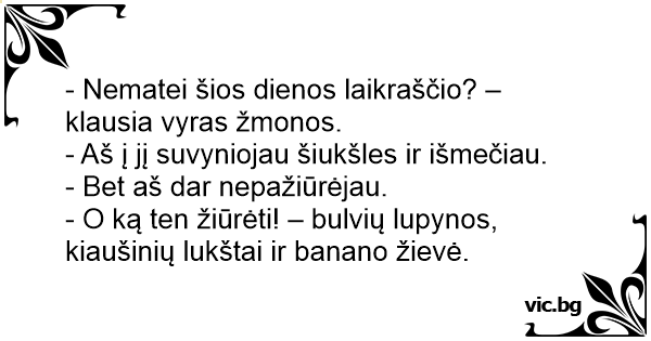 - Nematei šios dienos laikraščio? – klausia vyras žmonos.