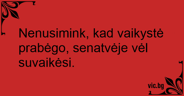 Nenusimink, kad vaikystė prabėgo, senatvėje vėl suvaikėsi.