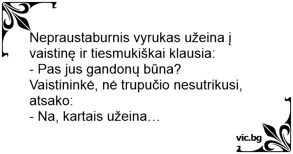 Nepraustaburnis vyrukas užeina į vaistinę ir tiesmukiškai klausia: