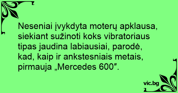 Neseniai įvykdyta moterų apklausa, siekiant sužinoti koks vibratoriaus tipas jaudina labiausiai, parodė, kad, kaip ir ankstesniais metais, pirmauja „Mercedes 600″.