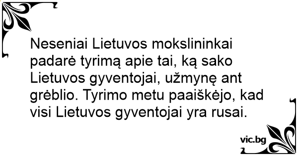 Neseniai Lietuvos mokslininkai padarė tyrimą apie tai, ką sako Lietuvos gyventojai, užmynę ant grėblio. Tyrimo metu paaiškėjo, kad visi Lietuvos gyventojai yra rusai.