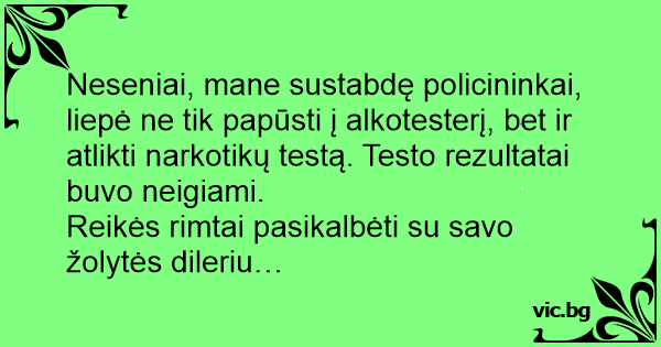 Neseniai, mane sustabdę policininkai, liepė ne tik papūsti į alkotesterį, bet ir atlikti narkotikų testą. Testo rezultatai buvo neigiami.
