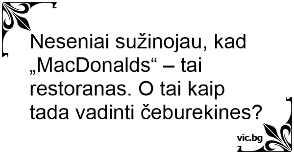 Neseniai sužinojau, kad „MacDonalds“ – tai restoranas. O tai kaip tada vadinti čeburekines?