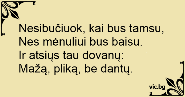 Nesibučiuok, kai bus tamsu,...