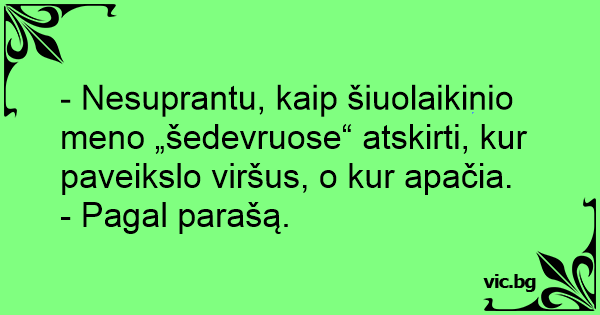 - Nesuprantu, kaip šiuolaikinio meno „šedevruose“ atskirti, kur paveikslo viršus, o kur apačia.