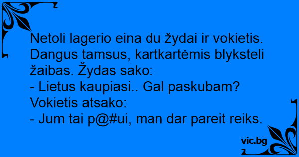 Netoli lagerio eina du žydai ir vokietis. Dangus tamsus, kartkartėmis blyksteli žaibas. Žydas sako: