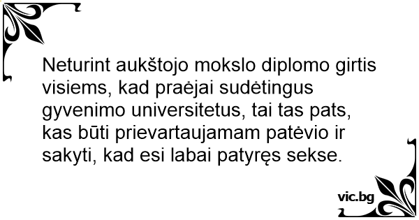 Neturint aukštojo mokslo diplomo girtis visiems, kad praėjai sudėtingus gyvenimo universitetus, tai tas pats, kas būti prievartaujamam patėvio ir sakyti, kad esi labai patyręs sekse.