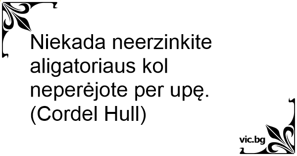 Niekada neerzinkite aligatoriaus kol neperėjote per upę. (Cordel Hull)