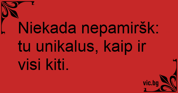 Niekada nepamiršk: tu unikalus, kaip ir visi kiti.