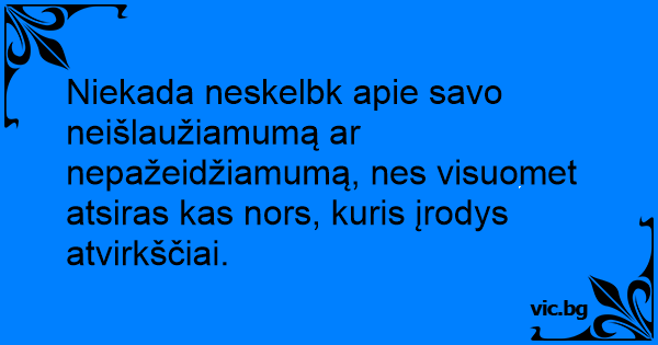 Niekada neskelbk apie savo neišlaužiamumą ar nepažeidžiamumą, nes visuomet atsiras kas nors, kuris įrodys atvirkščiai.