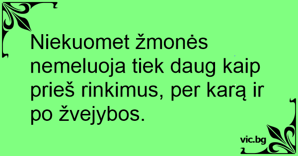 Niekuomet žmonės nemeluoja tiek daug kaip prieš rinkimus, per karą ir po žvejybos.