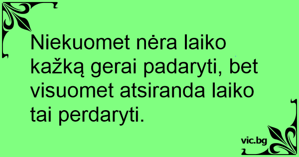Niekuomet nėra laiko kažką gerai padaryti, bet visuomet atsiranda laiko tai perdaryti.