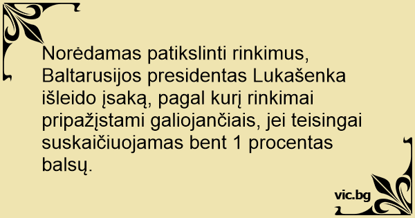 Norėdamas patikslinti rinkimus, Baltarusijos presidentas Lukašenka išleido įsaką, pagal kurį rinkimai pripažįstami galiojančiais, jei teisingai suskaičiuojamas веnт 1 procentas balsų.